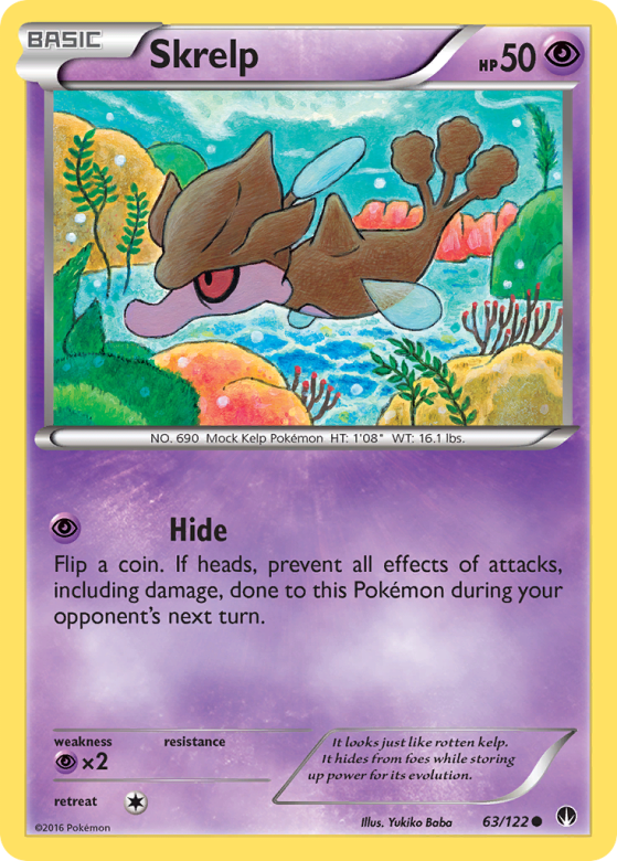 It looks just like rotten kelp. It hides from foes while storing up power for its evolution.