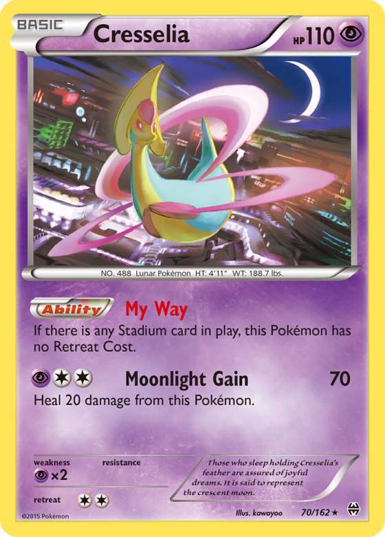 Those who sleep holding Cresselia's feather are assured of joyful dreams. It is said to represent the crescent moon.