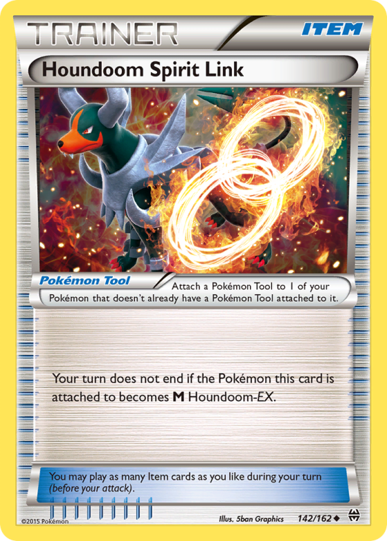 Attach a Pokémon Tool to 1 of your Pokémon that doesn't already have a Pokémon Tool attached to it. Your turn does not end if the Pokémon this card is attached to becomes M Houndoom-EX. You may play as many Item cards as you like during your turn (before your attack).
