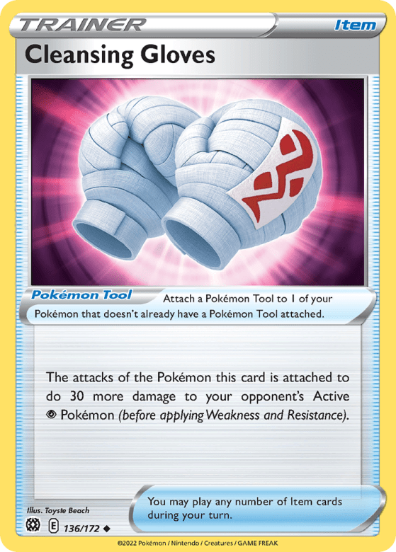 The attacks of the Pokémon this card is attached to do 30 more damage to your opponent's Active Psychic Pokémon (before applying Weakness and Resistance). You may play any number of Item cards during your turn. Attach a Pokémon Tool to 1 of your Pokémon that doesn't already have a Pokémon Tool attached.