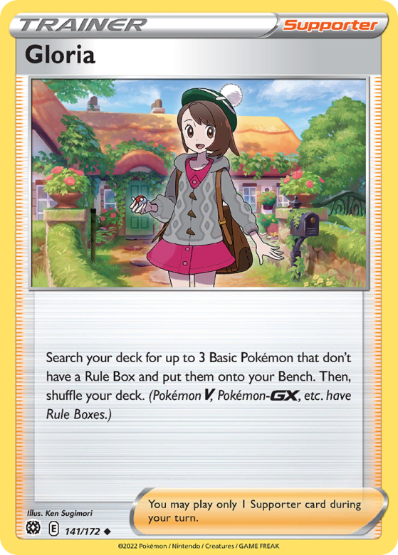 Search your deck for up to 3 Basic Pokémon that don't have a Rule Box and put them onto your Bench. Then, shuffle your deck. (Pokémon V, Pokémon-GX, etc. have Rule Boxes.) You may play only 1 Supporter card during your turn.