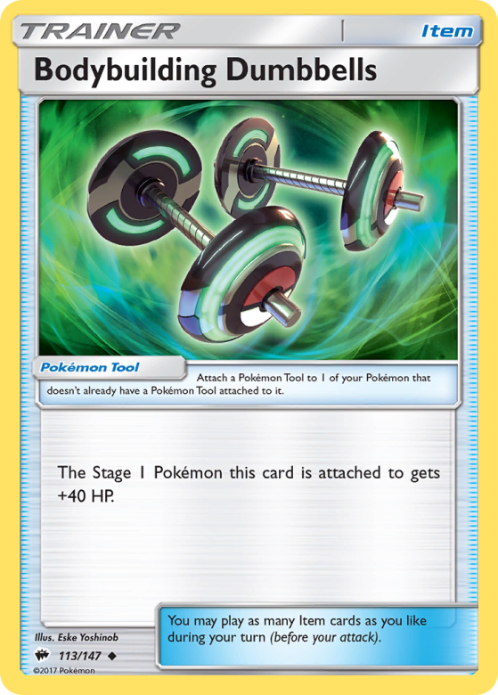 Attach a Pokémon Tool to 1 of your Pokémon that doesn't already have a Pokémon Tool attached to it. The Stage 1 Pokémon this card is attached to gets +40 HP. You may play as many Item cards as you like during your turn (before your attack).