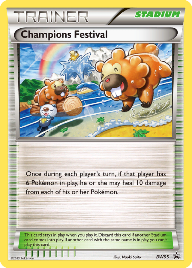 Once during each player's turn, if that player has 6 Pokémon in play, he or she may heal 10 damage from each of his or her Pokémon. This card stays in play when you play it. Discard this card if another Stadium card comes into play. If another card with the same name is in play, you can't play this card.
