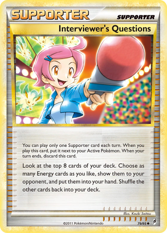 You can play only one Supporter card each turn. When you play this card, put it next to your Active Pokémon. When your turn ends, discard this card. Look at the top 8 cards of your deck. Choose as many Energy cards as you like, show them to your opponent, and put them into your hand. Shuffle the other cards back into your deck.