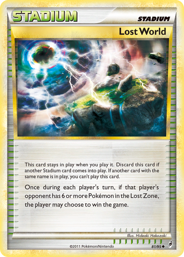 This card stays in play when you play it. Discard this card if another Stadium card comes into play. If another card with the same name is in play, you can't play this card. Once during each player's turn, if that player's opponent has 6 or more Pokémon in the Lost Zone, the player may choose to win the game.