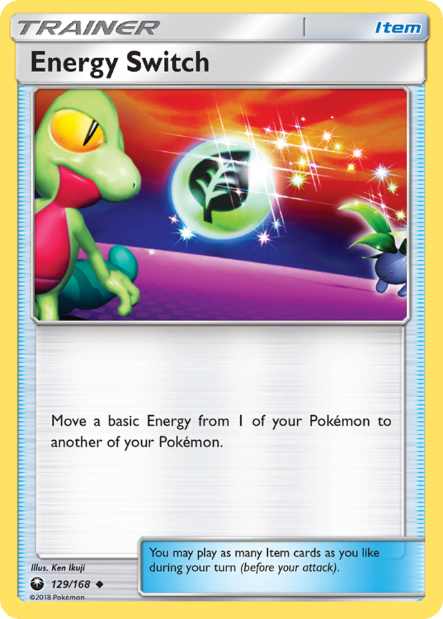 Move a basic Energy from 1 of your Pokémon to another of your Pokémon. You may play as many Item cards as you like during your turn (before your attack).