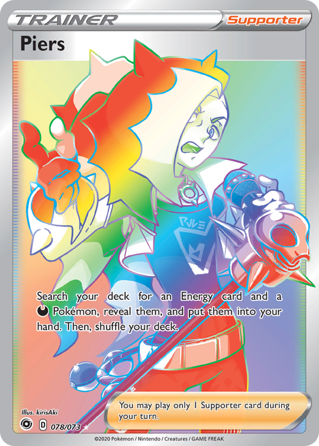 Search your deck for an Energy card and a Darkness Pokémon, reveal them, and put them into your hand. Then, shuffle your deck. You may play only 1 Supporter card during your turn.