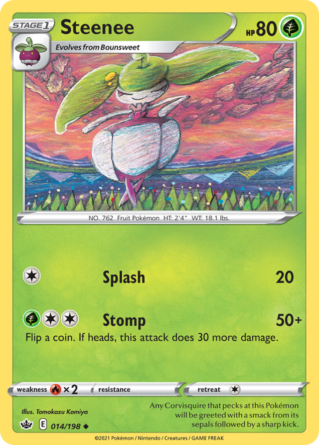 Any Corvisquire that pecks at this Pokémon will be greeted with a smack from its sepals followed by a sharp kick.