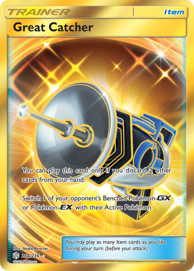 You can play this card only if you discard 2 other cards from your hand. Switch 1 of your opponent's Benched Pokémon-GX or Pokémon-EX with their Active Pokémon. You may play as many Item cards as you like during your turn (before your attack).