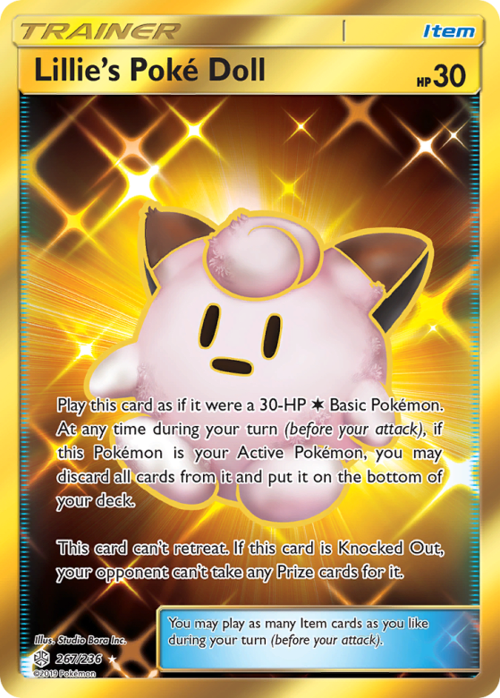 Play this card as if it were a 30-HP Colorless Basic Pokémon. At any time during your turn (before your attack), if this Pokémon is your Active Pokémon, you may discard all cards from it and put it on the bottom of your deck. This card can't retreat. If this card is Knocked Out, your opponent can't take any Prize cards for it. You may play as many Item cards as you like during your turn (before your attack).
