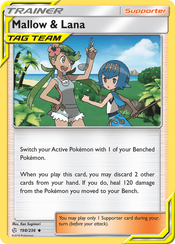 Switch your Active Pokémon with 1 of your Benched Pokémon. When you play this card, you may discard 2 other cards from your hand. If you do, heal 120 damage from the Pokémon you moved to your Bench. You may play only 1 Supporter card during your turn (before your attack).
