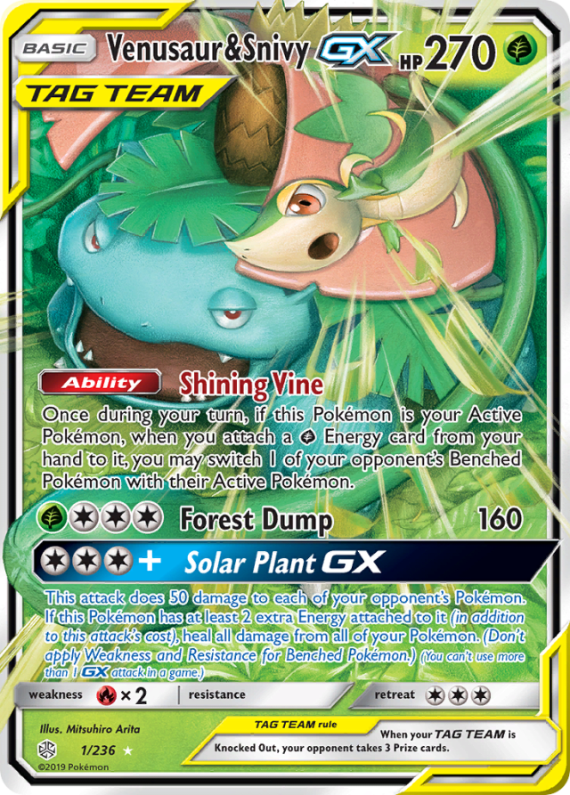 This attack does 50 damage to each of your opponent's Pokémon. If this Pokémon has at least 2 extra Energy attached to it (in addition to this attack's cost), heal all damage from all of your Pokémon. (Don't apply Weakness and Resistance for Benched Pokémon.) (You can't use more than 1 GX attack in a game.)
