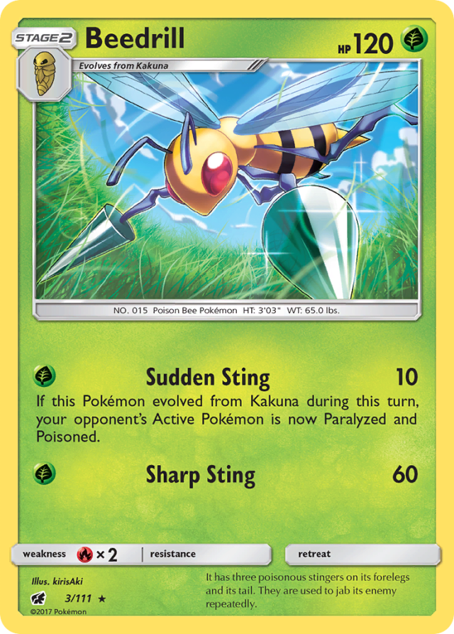 If this Pokémon evolved from Kakuna during this turn, your opponent's Active Pokémon is now Paralyzed and Poisoned.