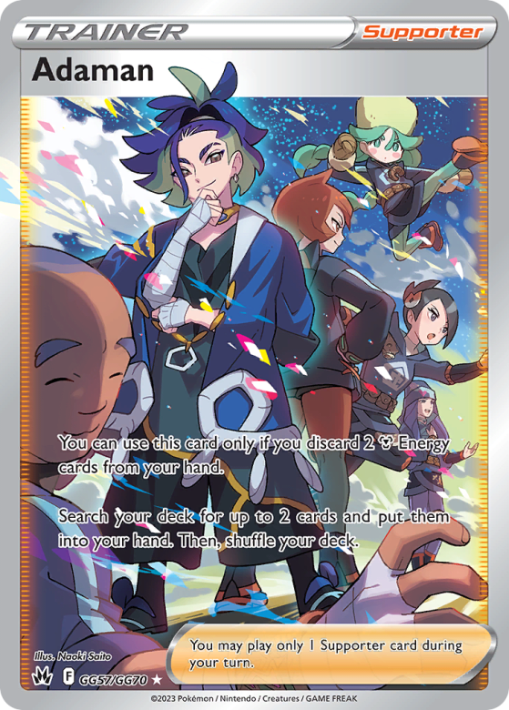 You can use this card only if you discard 2 Metal Energy cards from your hand. Search your deck for up to 2 cards and put them into your hand. Then, shuffle your deck. You may play only 1 Supporter card during your turn.