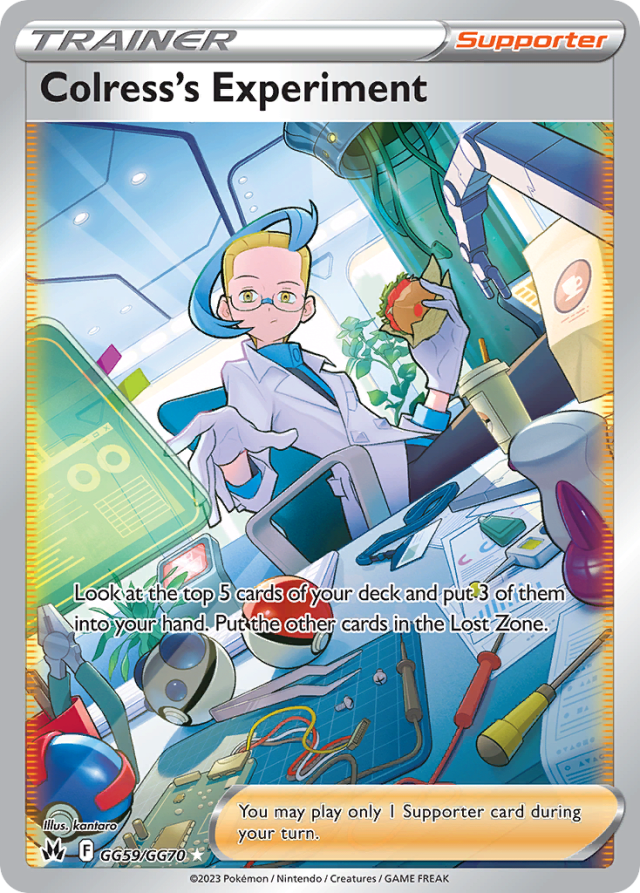 Look at the top 5 cards of your deck and put 3 of them into your hand. Put the other cards in the Lost Zone. You may play only 1 Supporter card during your turn.