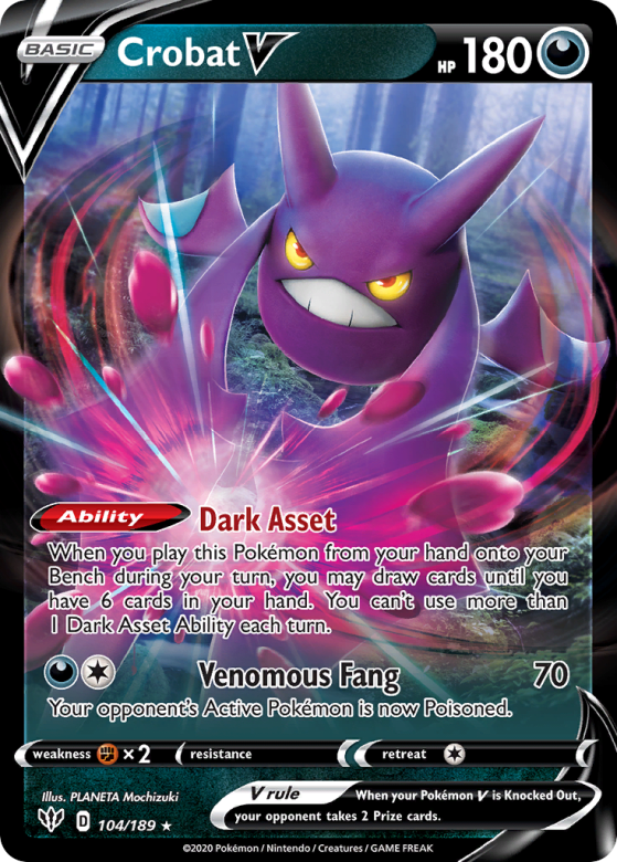 When you play this Pokémon from your hand onto your Bench during your turn, you may draw cards until you have 6 cards in your hand. You can't use more than 1 Dark Asset Ability each turn.