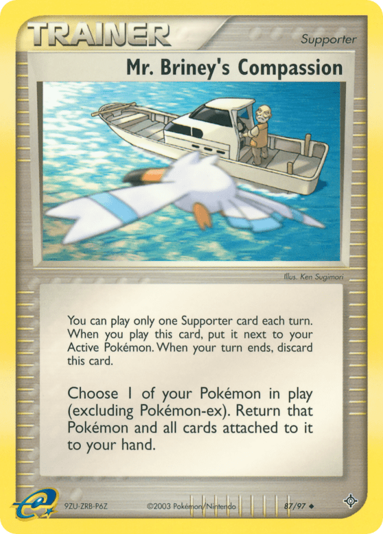 You can play only one Supporter card each turn. When you play this card, put it next to your Active Pokémon. When your turn ends, discard this card. Choose 1 of your Pokémon in play (excluding Pokémon-ex). Return that Pokémon and all cards attached to it to your hand.