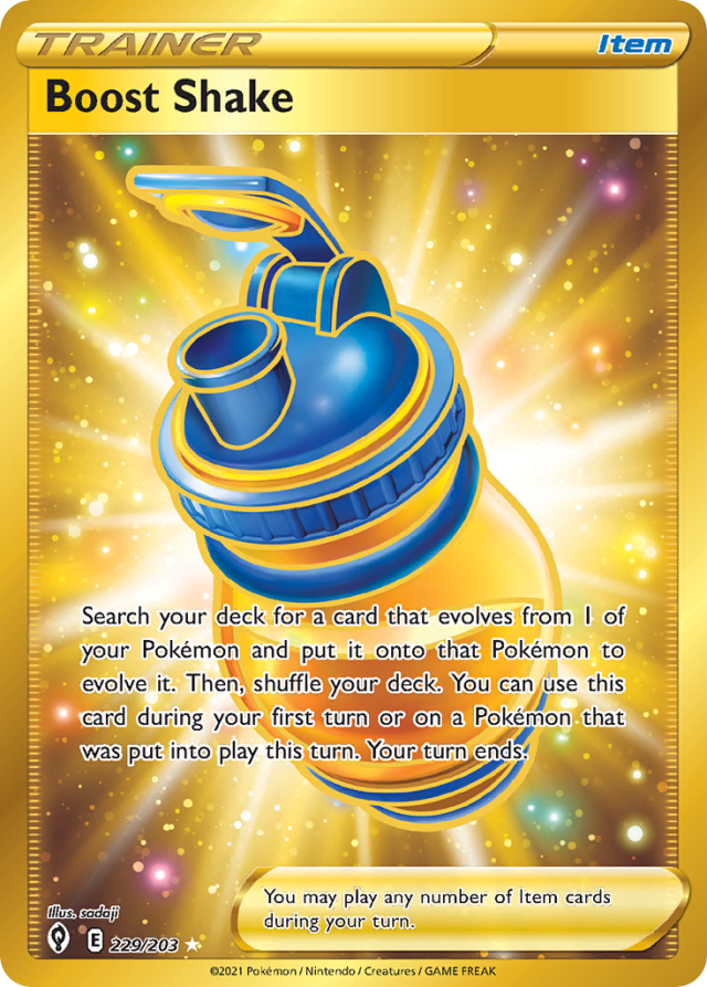 Search your deck for a card that evolves from 1 of your Pokémon and put it onto that Pokémon to evolve it. Then, shuffle your deck. You can use this card during your first turn or on a Pokémon that was put into play this turn. Your turn ends. You may play any number of Item cards during your turn.
