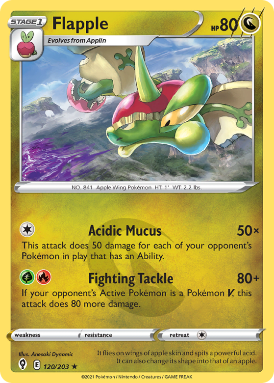 It flies on wings of apple skin and spits a powerful acid. It can also change its shape into that of an apple.