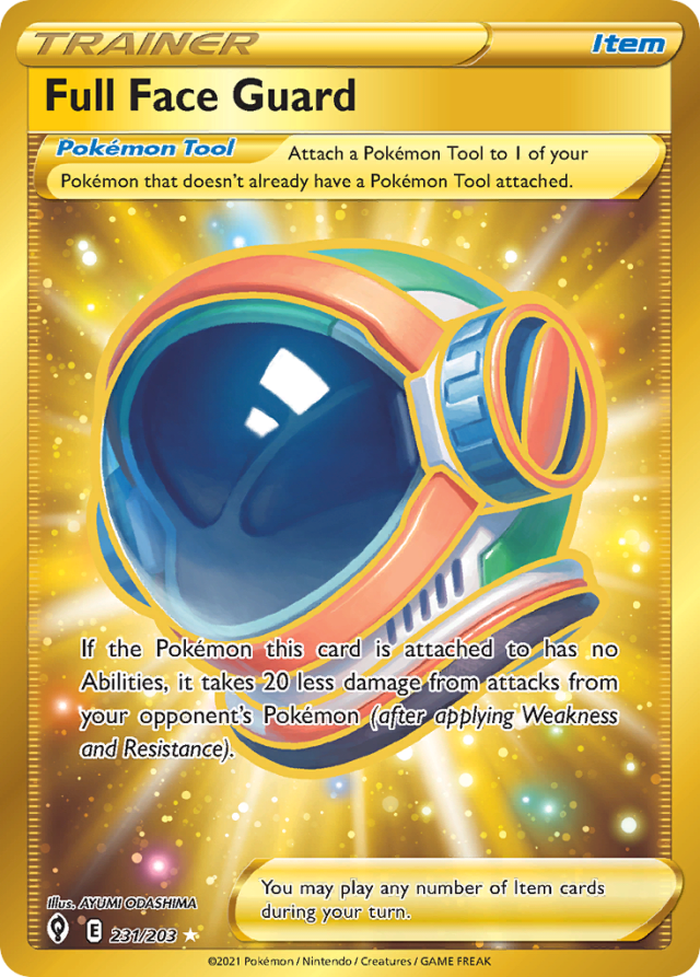 If the Pokémon this card is attached to has no Abilities, it takes 20 less damage from attacks from your opponent's Pokémon (after applying Weakness and Resistance). You may play any number of Item cards during your turn. Attach a Pokémon Tool to 1 of your Pokémon that doesn't already have a Pokémon Tool attached.