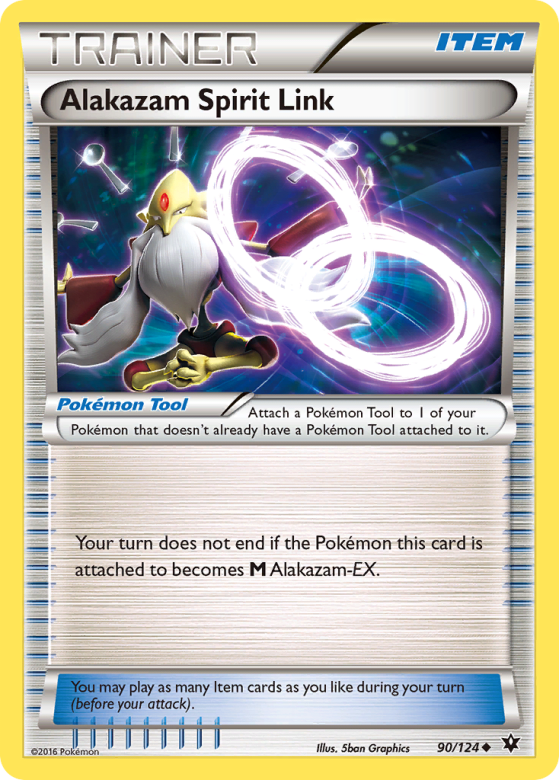 Attach a Pokémon Tool to 1 of your Pokémon that doesn't already have a Pokémon Tool attached to it. Your turn does not end if the Pokémon this card is attached to becomes M Alakazam-EX. You may play as many Item cards as you like during your turn (before your attack).