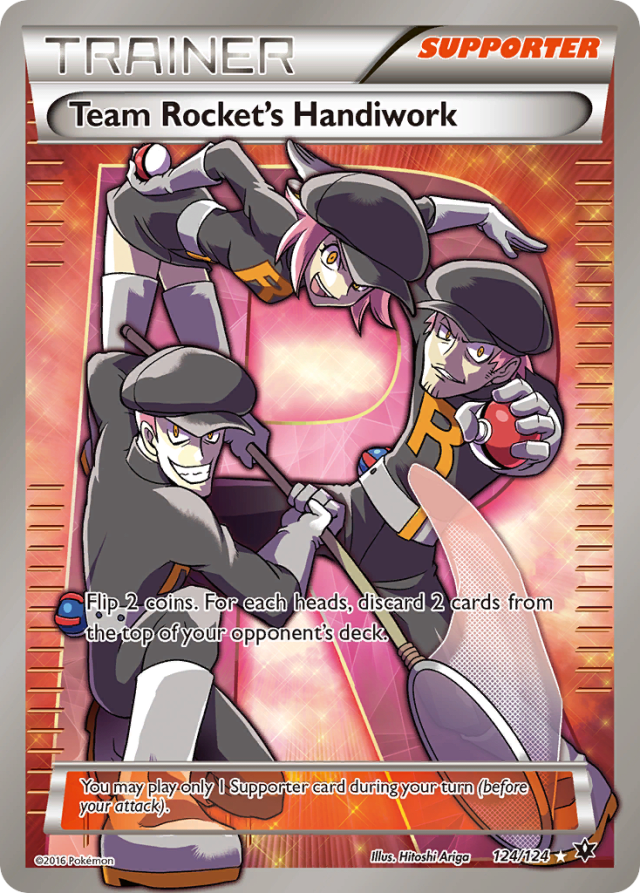 Flip 2 coins. For each heads, discard 2 cards from the top of your opponent's deck. You may play only 1 Supporter card during your turn (before your attack).