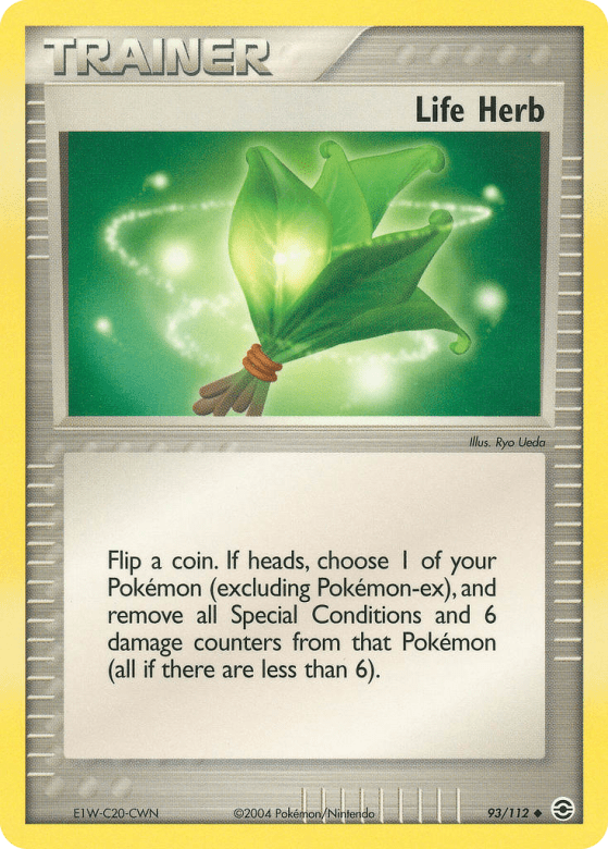 Flip a coin. If heads, choose 1 of your Pokémon (excluding Pokémon-ex), and remove all Special Conditions and 6 damage counters from that Pokémon (all if there are less than 6).
