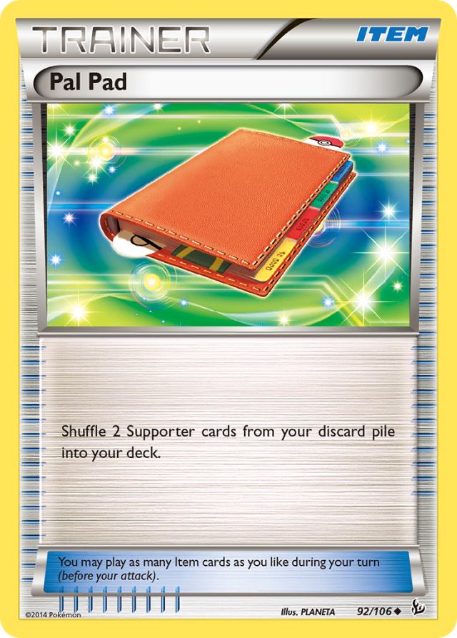 Shuffle 2 Supporter cards from your discard pile into your deck. You may play as many Item cards as you like during your turn (before your attack).