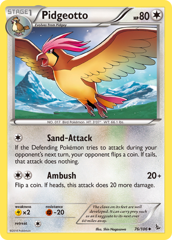 The claws on its feet are well developed. It can carry prey such as an Exeggcute to its nest over 60 miles away.