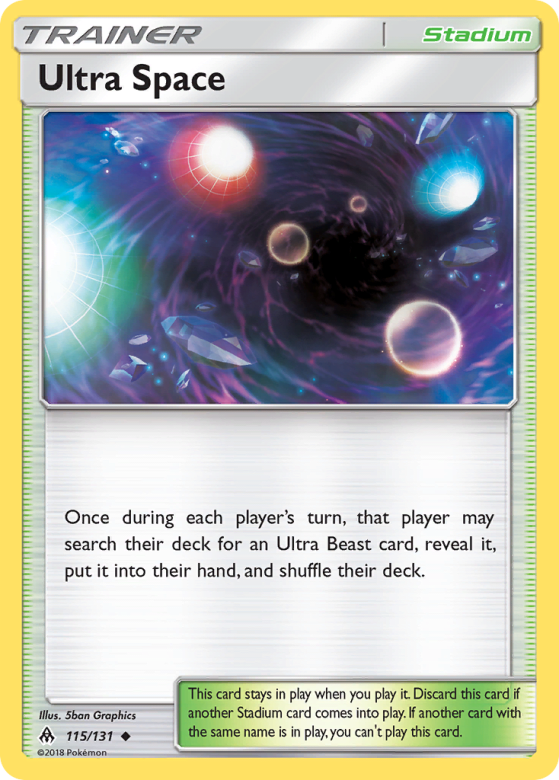 Once during each player's turn, that player may search their deck for an Ultra Beast card, reveal it, put it into their hand, and shuffle their deck. This card stays in play when you play it. Discard this card if another Stadium card comes into play. If another card with the same name is in play, you can't play this card.