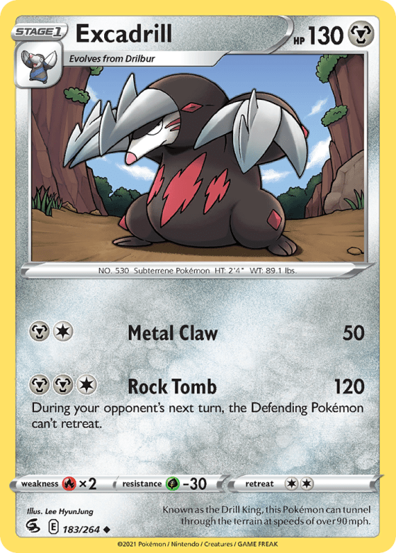 Known as the Drill King, this Pokémon can tunnel through the terrain at speeds of over 90 mph.