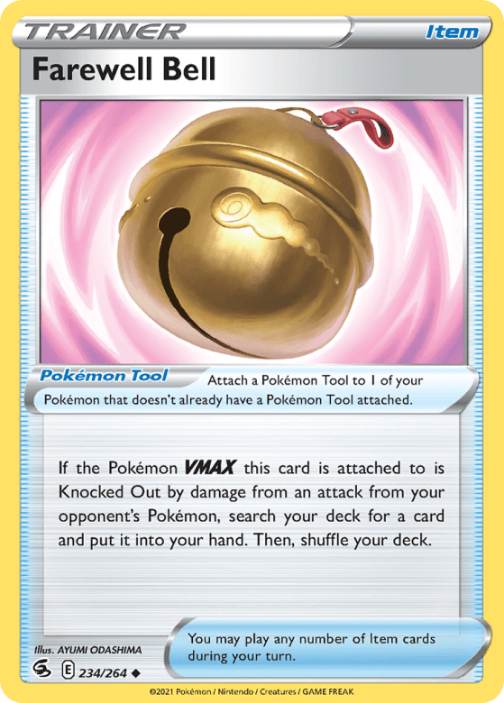 If the Pokémon VMAX this card is attached to is Knocked Out by damage from an attack from your opponent's Pokémon, search your deck for a card and put it into your hand. Then, shuffle your deck. You may play any number of Item cards during your turn. Attach a Pokémon Tool to 1 of your Pokémon that doesn't already have a Pokémon Tool attached.