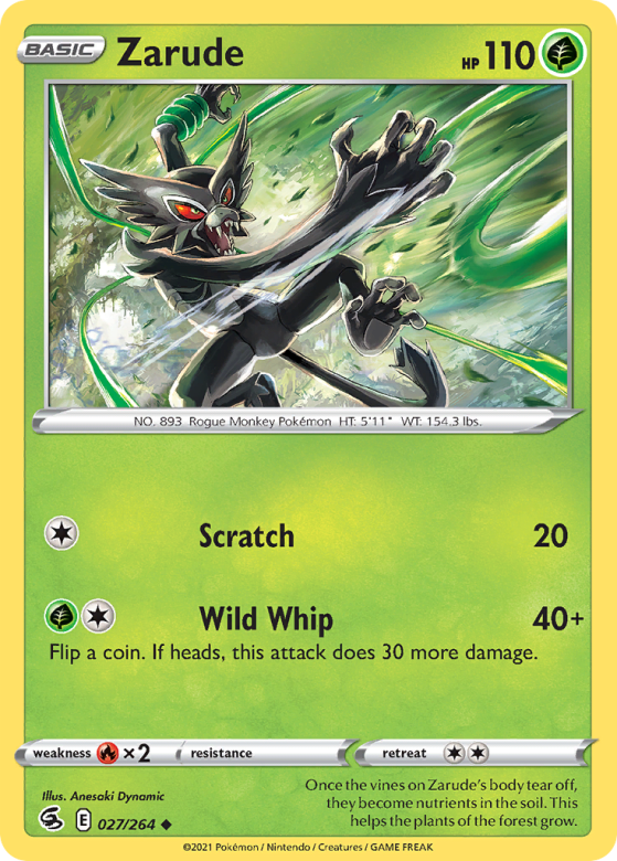 Once the vines on Zarude's body tear off, they become nutrients in the soil. This helps the plants of the forest grow.