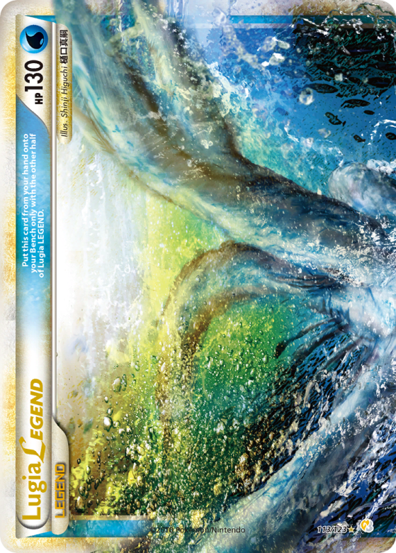 Once during your turn, when you put Lugia LEGEND into play, you may look at the top 5 cards of your deck and attach all Energy cards you find there to Lugia LEGEND. Discard the other cards.