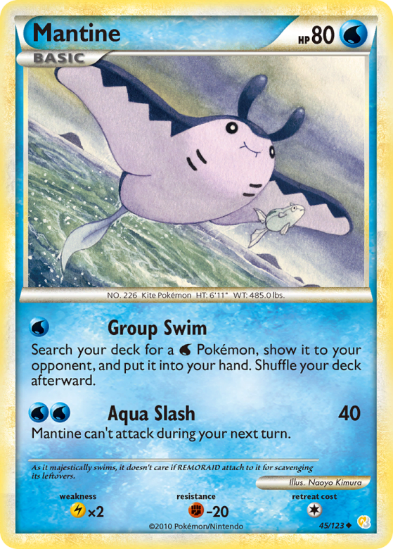 Search your deck for a Water Pokémon, show it to your opponent, and put it into your hand. Shuffle your deck afterward.