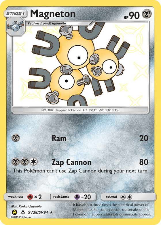 It has about three times the electrical power of Magnemite. For some reason, outbreaks of this Pokémon happen when lots of sunspots appear.