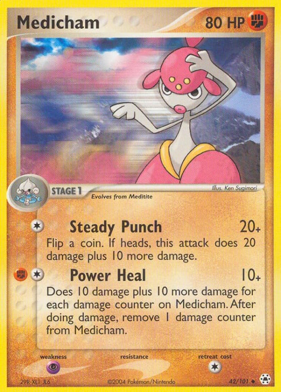 Does 10 damage plus 10 more damage for each damage counter on Medicham. After doing damage, remove 1 damage counter from Medicham.