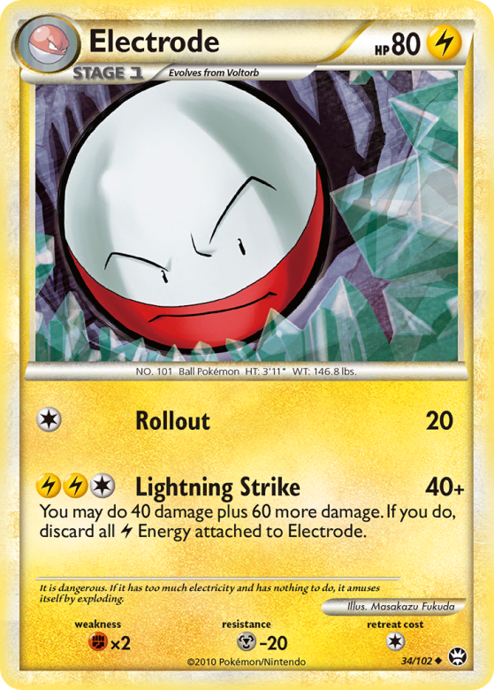 You may do 40 damage plus 60 more damage. If you do, discard all Lightning Energy attached to Electrode.