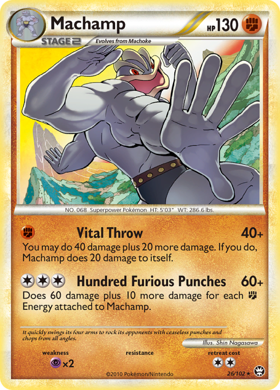 Does 60 damage plus 10 more damage for each Fighting Energy attached to Machamp.
