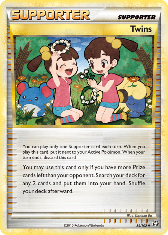 You can play only one Supporter card each turn. When you play this card, put it next to your Active Pokémon. When your turn ends, discard this card. You may use this card only if you have more Prize cards left than your opponent. Search your deck for any 2 cards and put them into your hand. Shuffle your deck afterward.