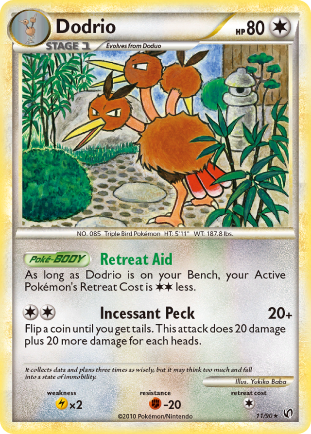 As long as Dodrio is on your Bench, your Active Pokémon's Retreat Cost is ColorlessColorless less.