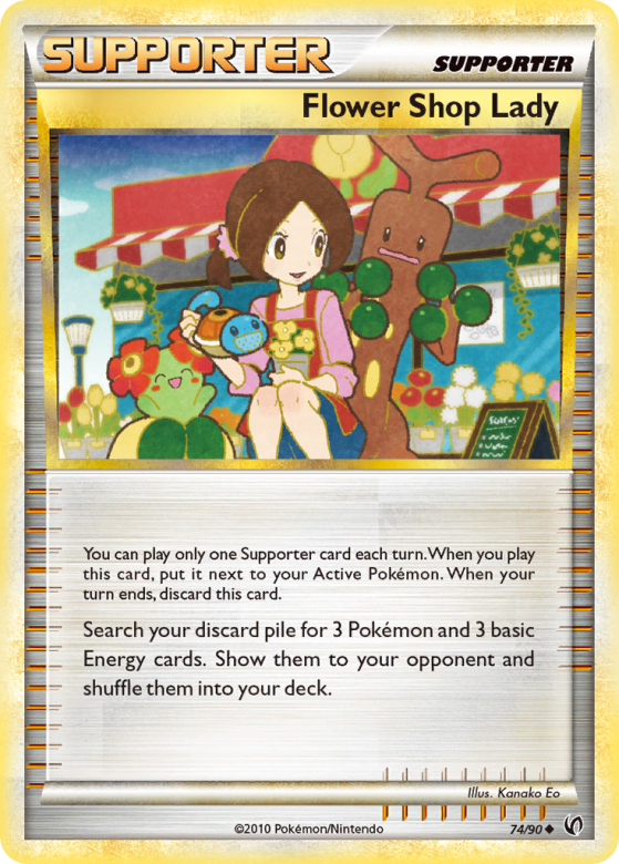 You can play only one Supporter card each turn. When you play this card, put it next to your Active Pokémon. When your turn ends, discard this card. Search your discard pile for 3 Pokémon and 3 basic Energy cards. Show them to your opponent and shuffle them into your deck.