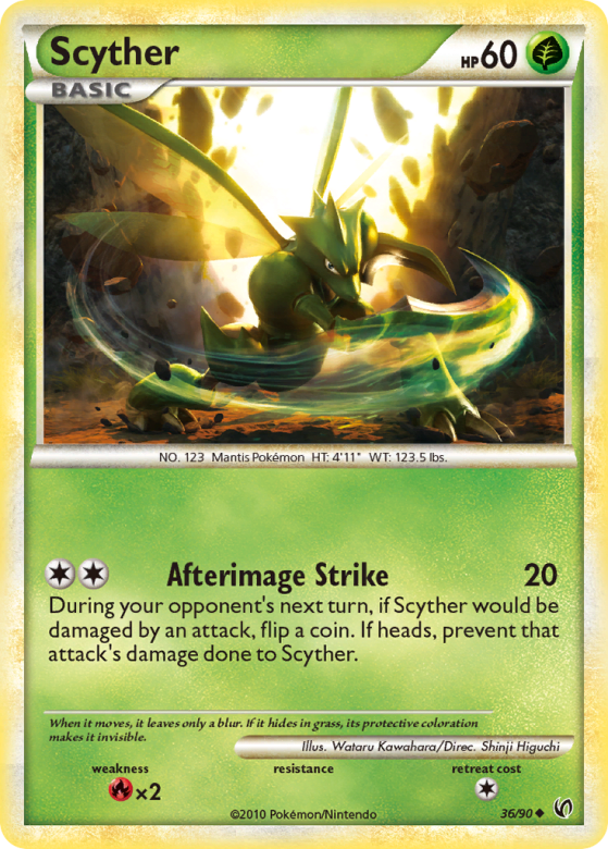 During your opponent's next turn, if Scyther would be damaged by an attack, flip a coin. If heads, prevent that attack's damage done to Scyther.