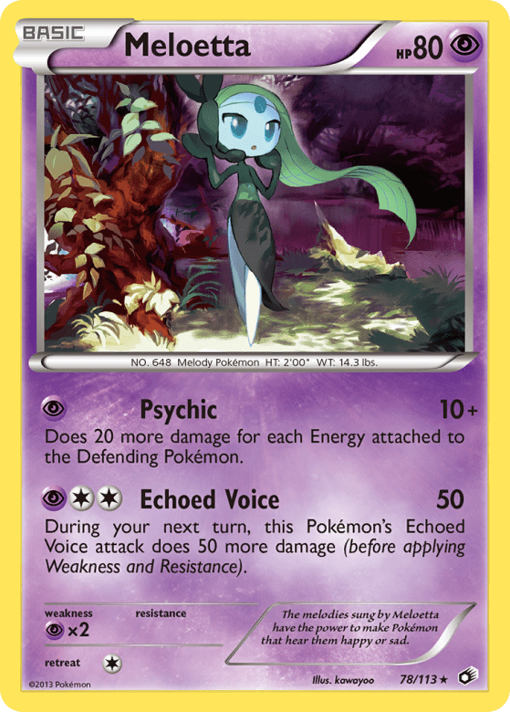 The melodies sung by Meloetta have the power to make Pokémon that hear them happy or sad.