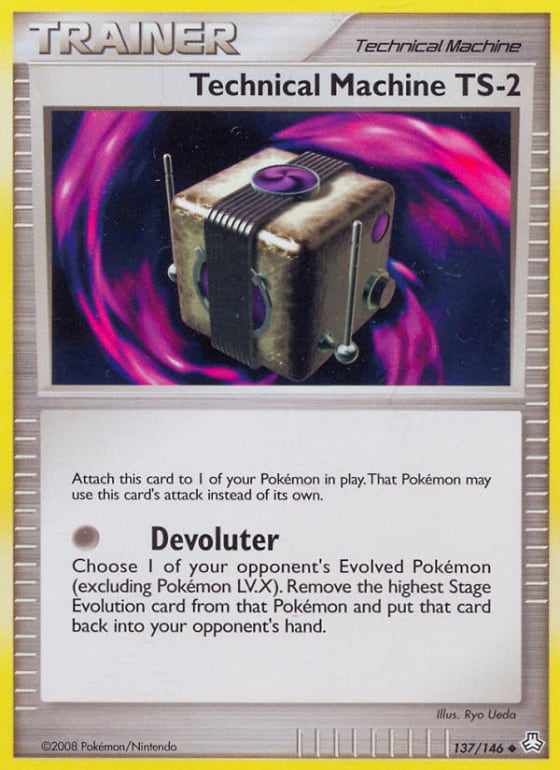 Choose 1 of your opponent's Evolved Pokémon (excluding Pokémon LV.X). Remove the highest Stage Evolution card from that Pokémon and put that card back into your opponent's hand.