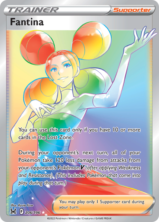 You can use this card only if you have 10 or more cards in the Lost Zone. During your opponent's next turn, all of your Pokémon take 120 less damage from attacks from your opponent's Pokémon V (after applying Weakness and Resistance). (This includes Pokémon that come into play during that turn.) You may play only 1 Supporter card during your turn.