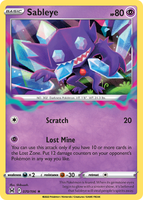 This Pokémon is feared. When its gemstone eyes begin to glow with a sinister shine, it's believed that Sableye will steal people's spirits away.