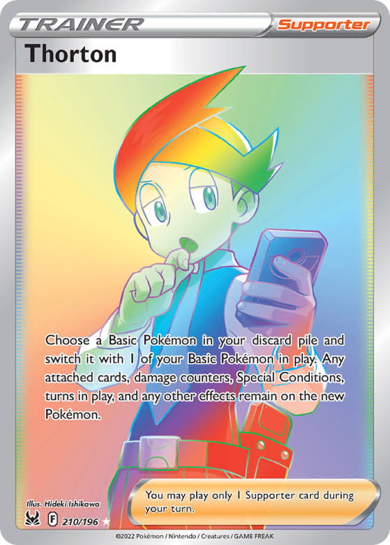 Choose a Basic Pokémon in your discard pile and switch it with 1 of your Basic Pokémon in play. Any attached cards, damage counters, Special Conditions, turns in play, and any other effects remain on the new Pokémon. You may play only 1 Supporter card during your turn.