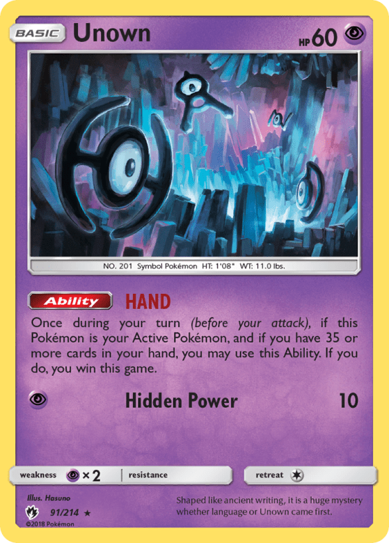 Once during your turn (before your attack), if this Pokémon is your Active Pokémon, and if you have 35 or more cards in your hand, you may use this Ability. If you do, you win this game.