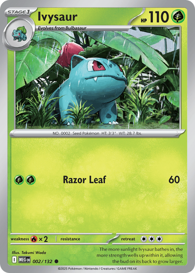 The more sunlight Ivysaur bathes in, the more strength wells up within it, allowing the bud on its back to grow larger.